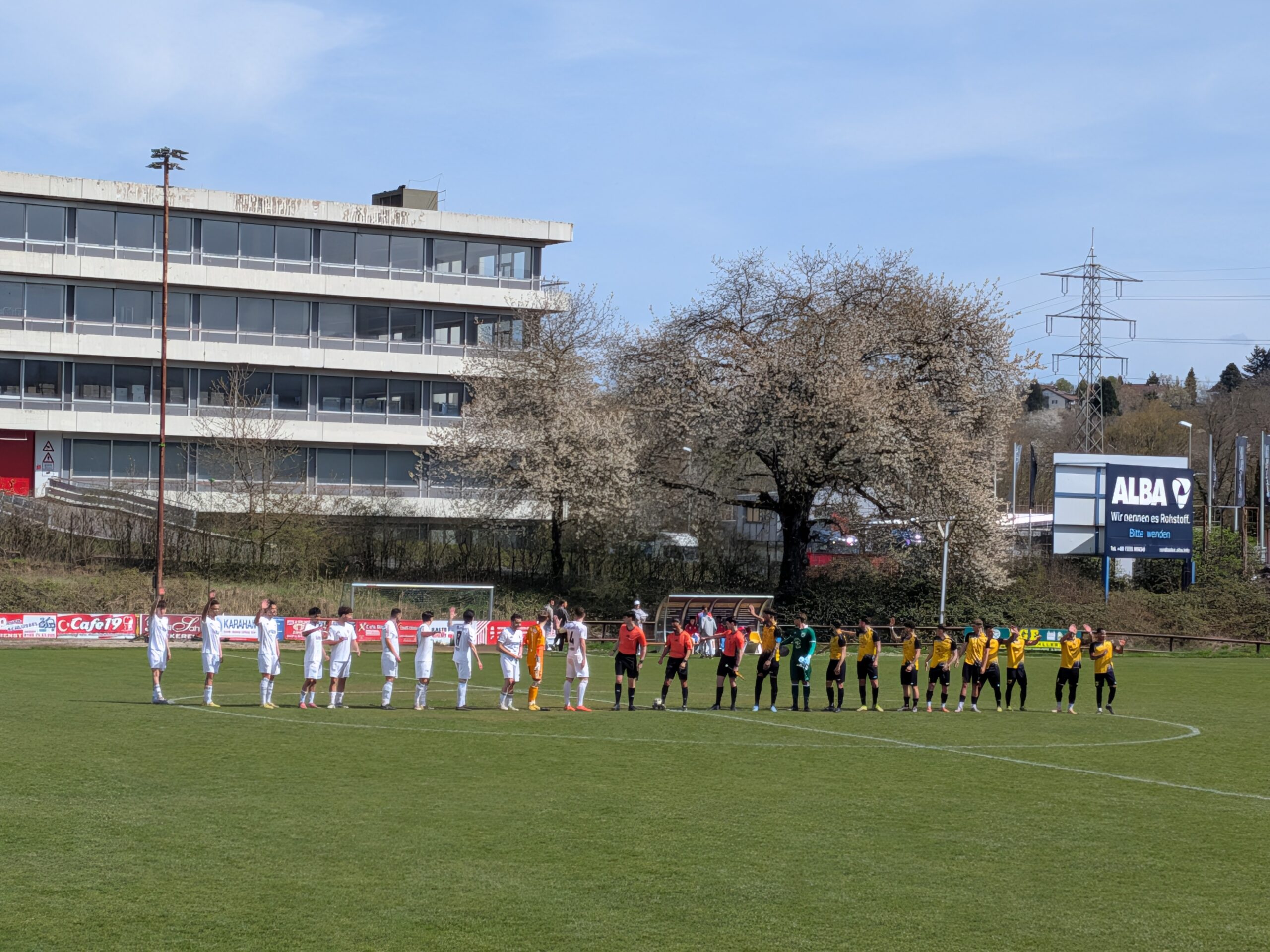 Mit einer knappen Niederlage kehrten unsere Jungs am Ostermontag aus Pforzheim zurück. Zwar gingen wir durch Amin Yazji in der 9. Minute mit 0:1 in Führung, doch die Gstgeber zeigten sich unbeeindruckt und glichen in der 13. Minute nach einem Eckball zum 1:1 aus. Großartiger Spielfluss wollte an diesem Nachmittag nicht so Recht gelingen, was wohl auch an den Platzverhältnissen lag. Pforzheim erspielte sich danach eine leichte Feldüberlegenheit und die wenigen Konter unserer Jungs verpufften noch vor dem gegnerischen Strafraum. Nach derm Seitenwechsel kam der VfB besser ins Spiel und hatte erneut durch Amin Yazji die Führung auf dem Fuß – doch scheiterte er an dem herauslaufenden Torhüter der Pforzheimer. Im weiteren Verlauf geschah dann nicht mehr viel – nennenswerte Chancen blieben auf beiden Seiten aus. In der 65. Minute gelang dann den Gastgebern nach einem vermeidbaren Eckball mit einem Sonntagsschuß aus 25m die 2:1 Führung, die bis Spielende ausreichte, da unsere Jungs in der Offensive zu harmlos waren an diesem Nachmittag.